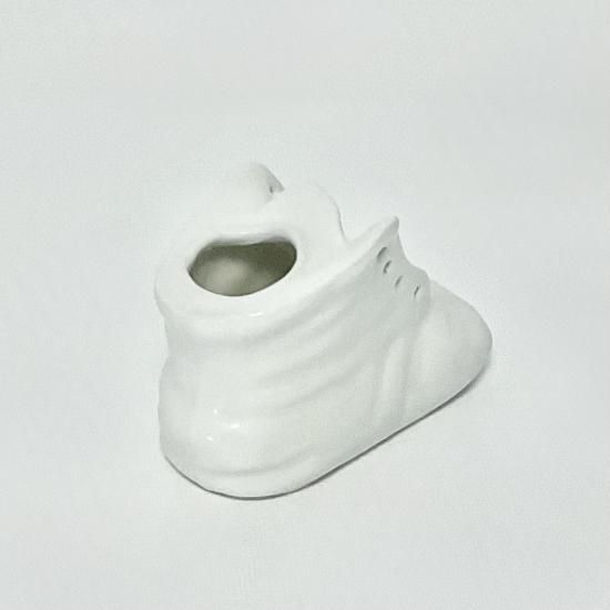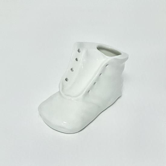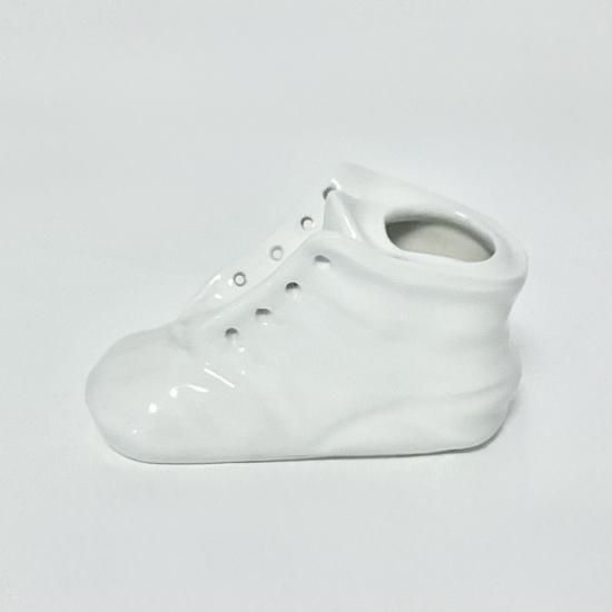 昔の白磁型から鋳込み焼成した、精巧なベビーシューズです。