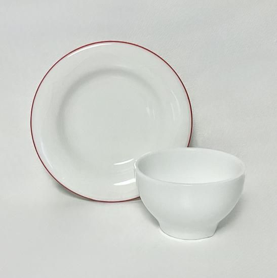 直径が11.5cmで、クリスマスレッドの縁と、リボンのレリーフのプレートに、