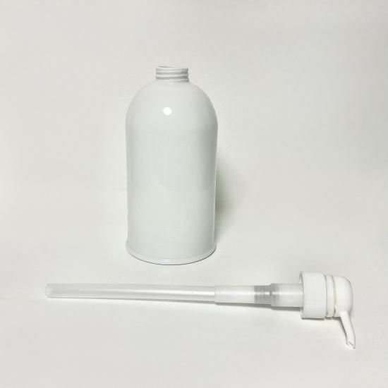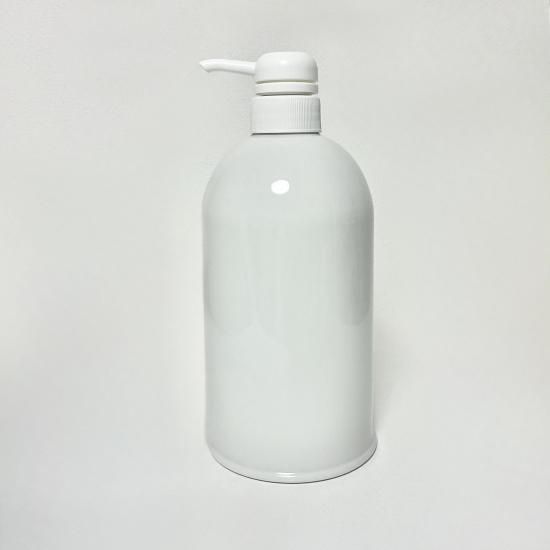 グレーがかった白磁の、ボディーソープやシャンプーの詰め替えボトルです。