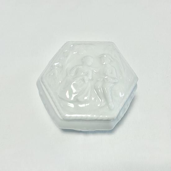 古典的な恋人達のレリーフが、繊細で優雅です。